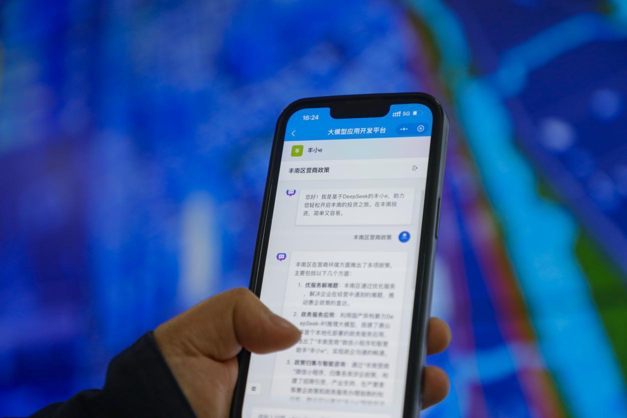 工作人员正在演示操作“丰小e”进行政策答疑。陈军摄近日,河北省唐山市丰南区聚焦大模型赋能,聚力政务服务数字化转型,上线“丰小e”智慧助手,通过“人工智能+政务服务”模式,一键解决企业各类难题,推动政府数字化、智能化水平。